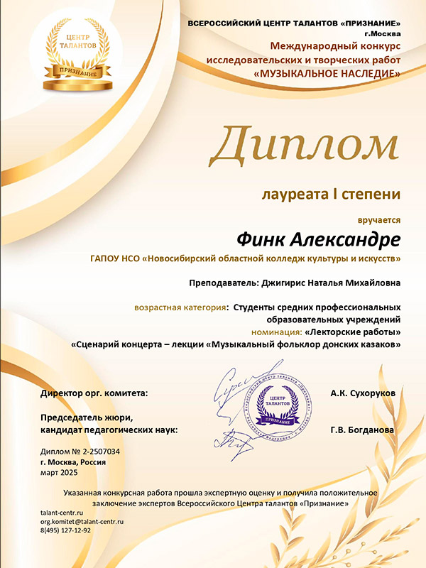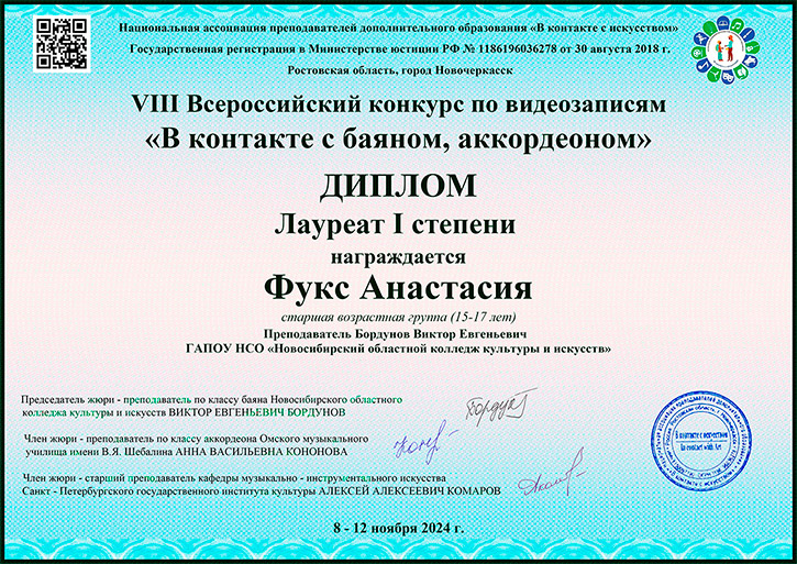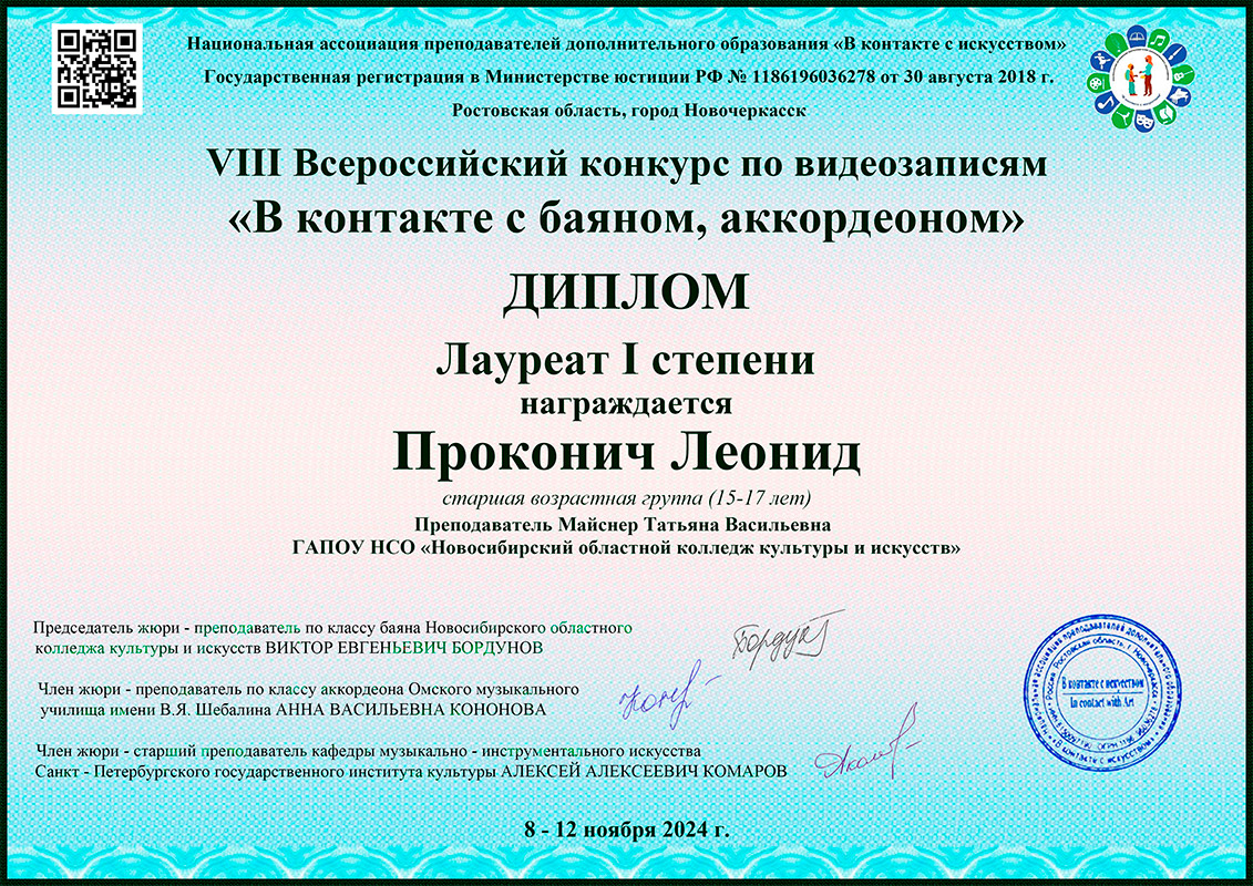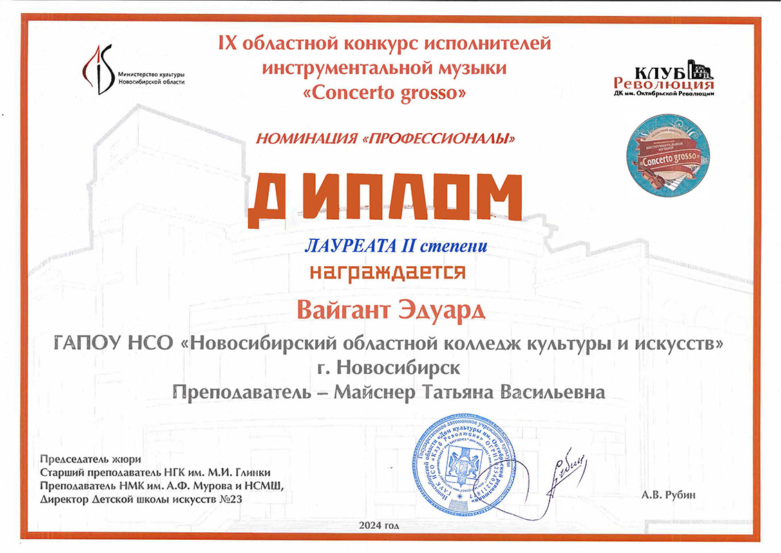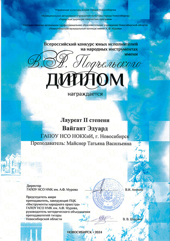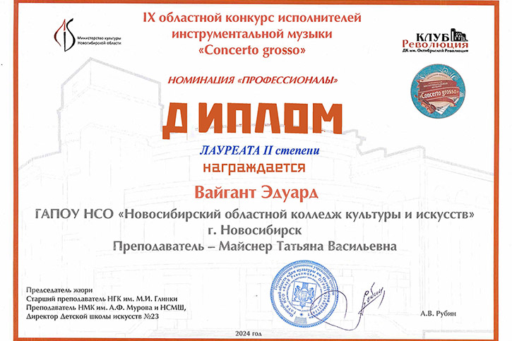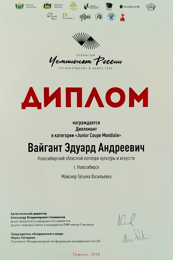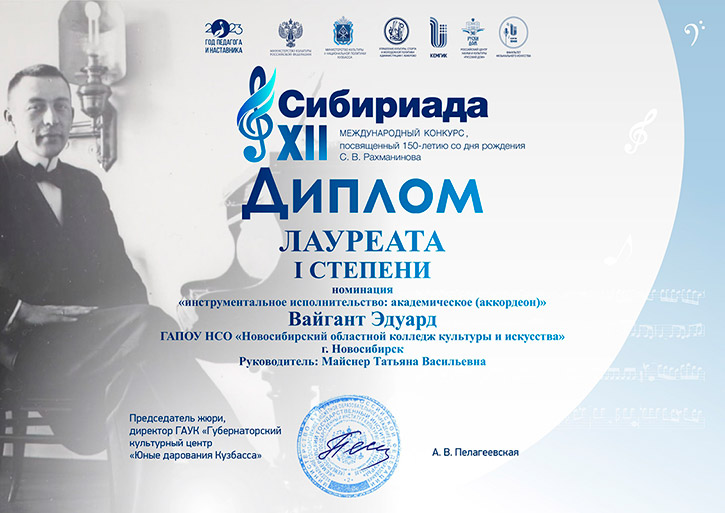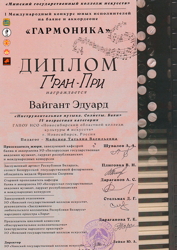 Лауреат 1 степени: Вайгант Эдуард
