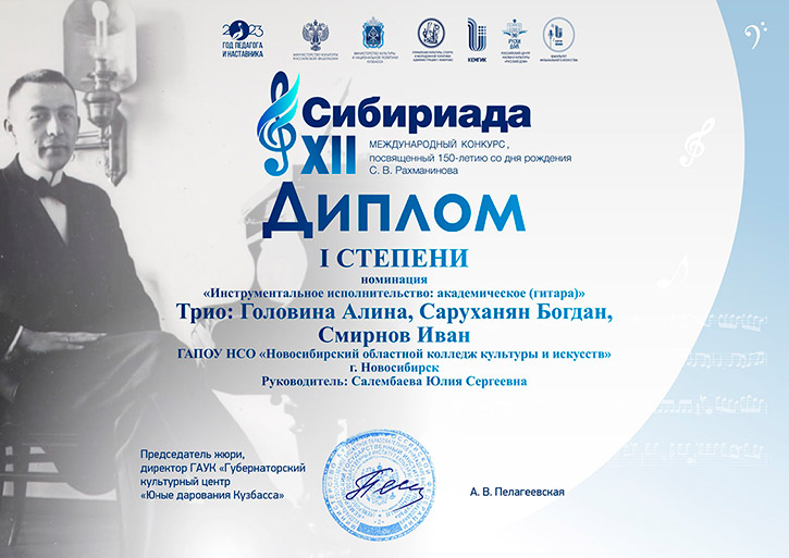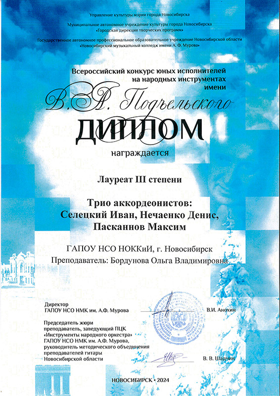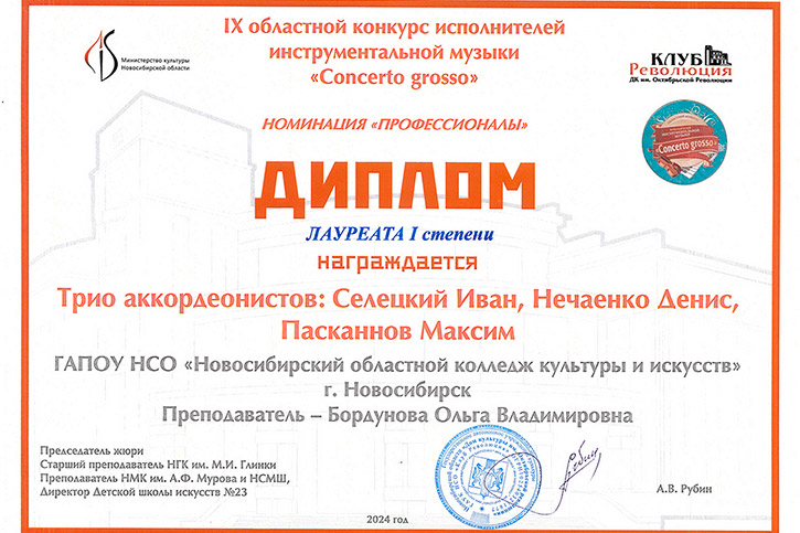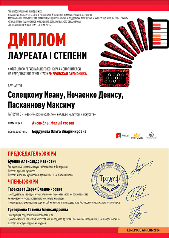 Лауреат 1 степени: трио Максим Пасканнов, Софья Кочкинекова, Денис Нечаенко