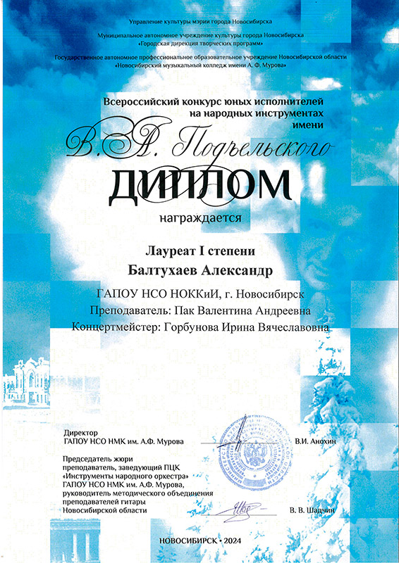 Лауреат 1 степени: Александр Балтухаев
