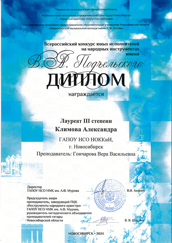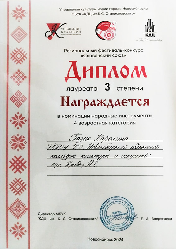 Лауреат 3 степени: Полина Матвеева