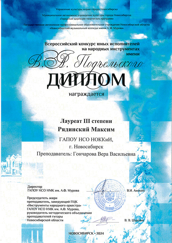 Лауреат 3 степени: Илья Мальцев