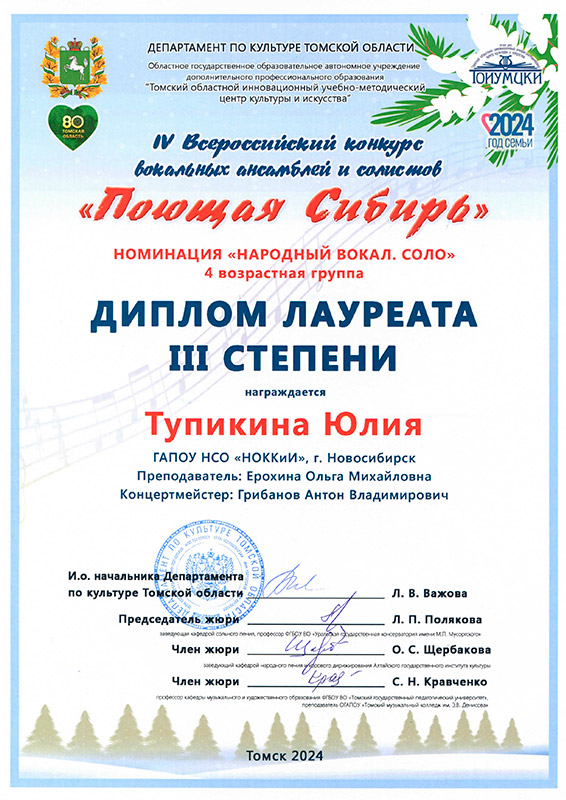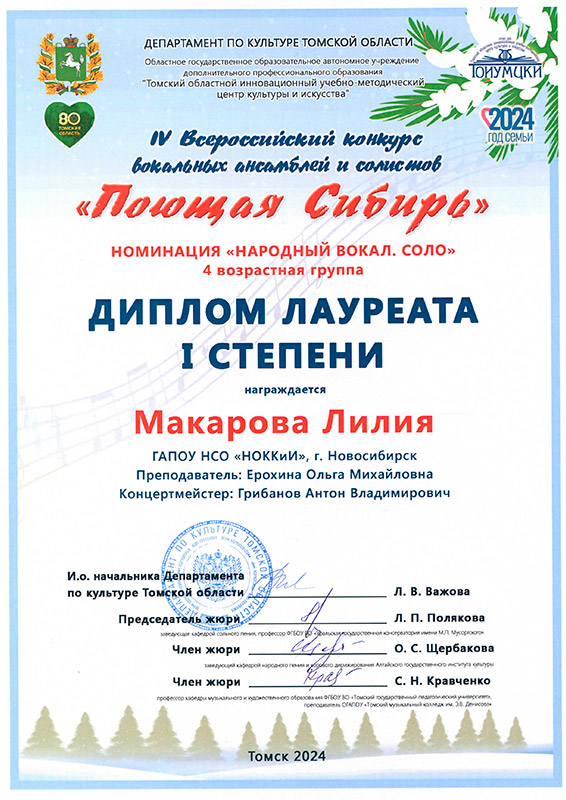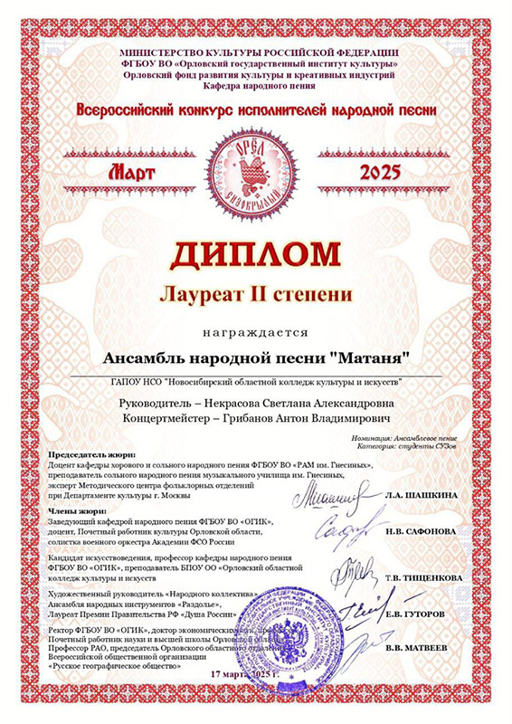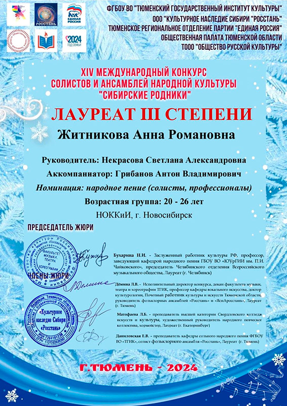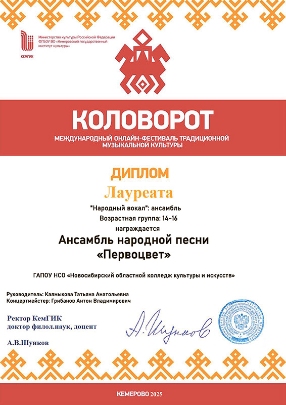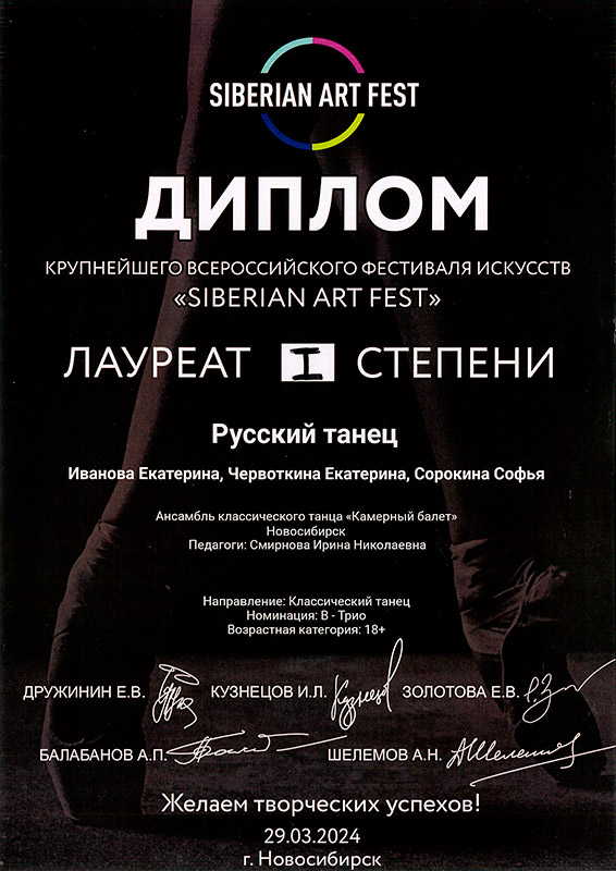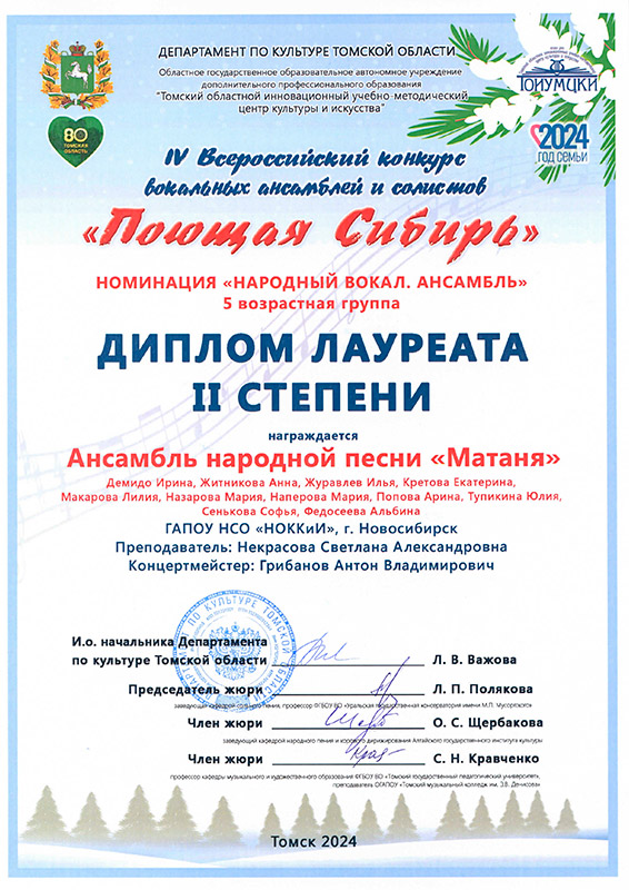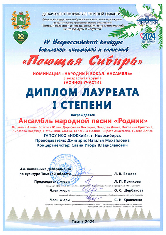 Лауреат 1 степени: Ансамбль "Сибирочка"