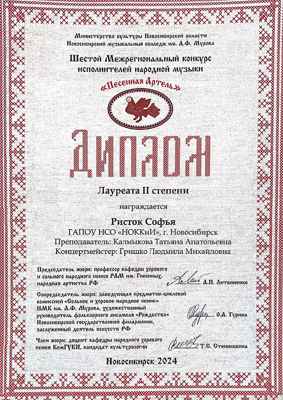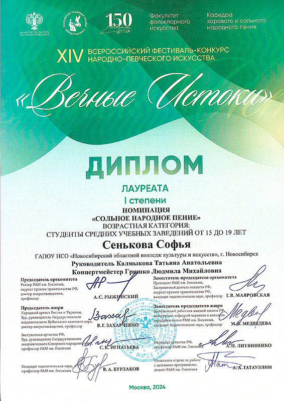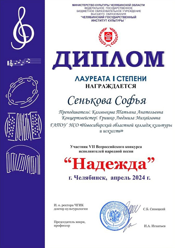 Лауреат 2 степени: Софья Сенькова