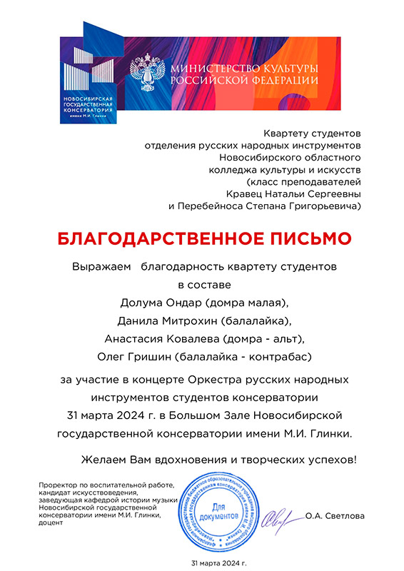 Лауреат 1 степени: Квартет домристов