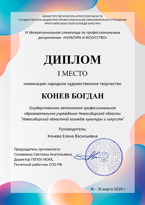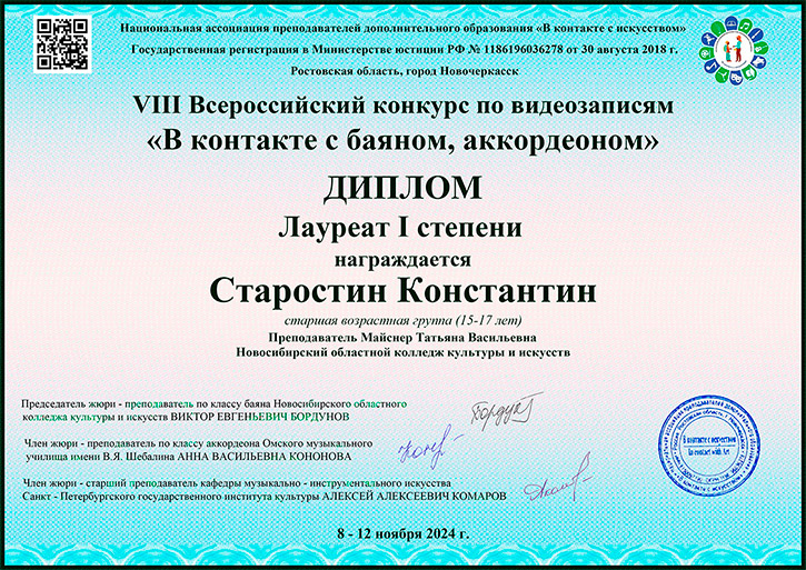 Лауреат 2 степени: Старостин Константин