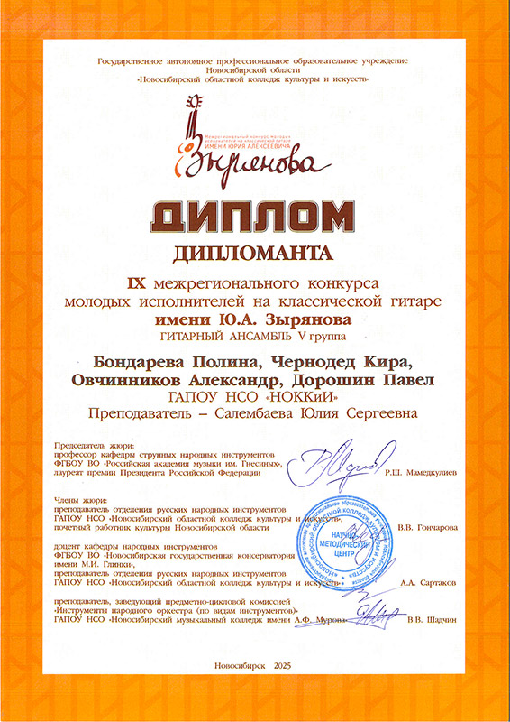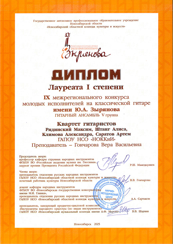 Лауреат 2 степени: Квартет гитаристов