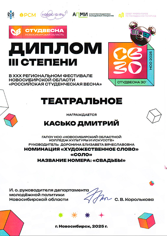 Лауреат 3 степени: Дмитрий Касько