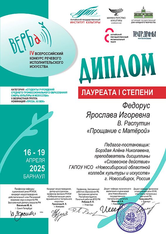 Номинация художественное слово