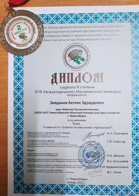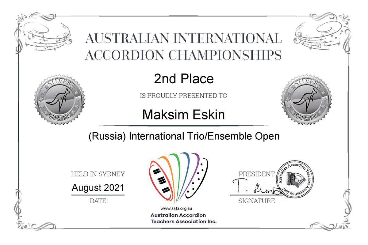 Еськин Максим серебряная медаль, категория "Интернациональный дуэт"