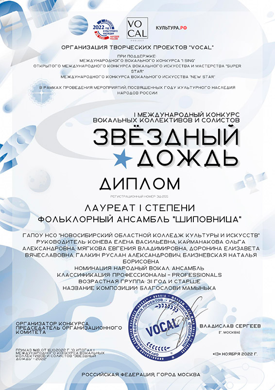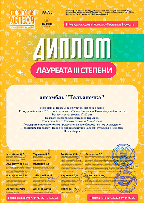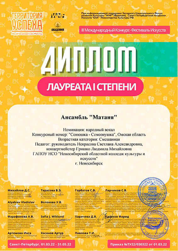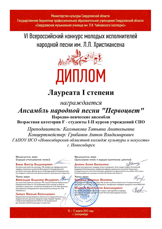 Ансамбль Фарафонов Павел, Еськин Максим, Горелов Лавр - лауреат II степени