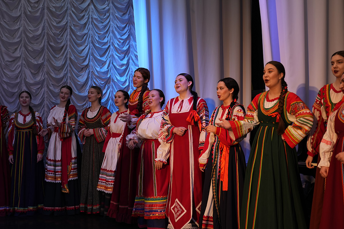 Направление работы коллектива: сводный хор студентов всех курсов, участвует в активном творческом процессе сохранения традиций народной культуры. Основное внимание в коллективе уделяется совершенствованию исполнительского мастерства хора, подбору репертуара и работе над многоголосием, чистотой интонации, однородностью звучания. Сохраняется наличие мужской группы хора.