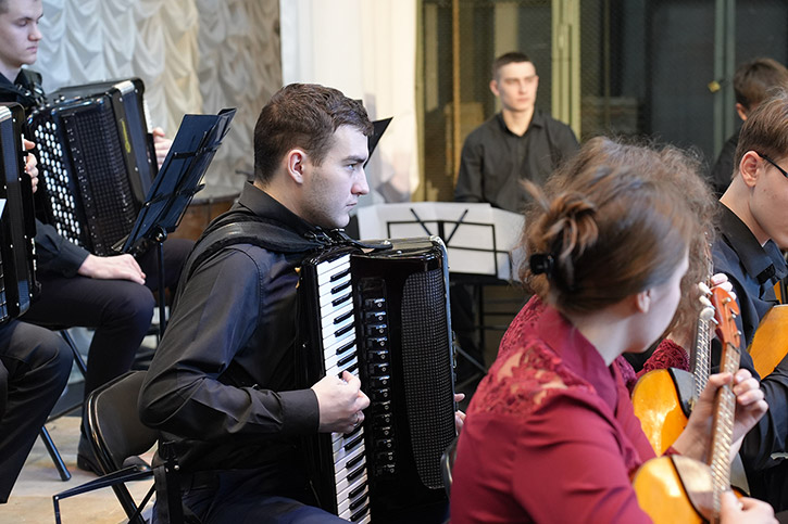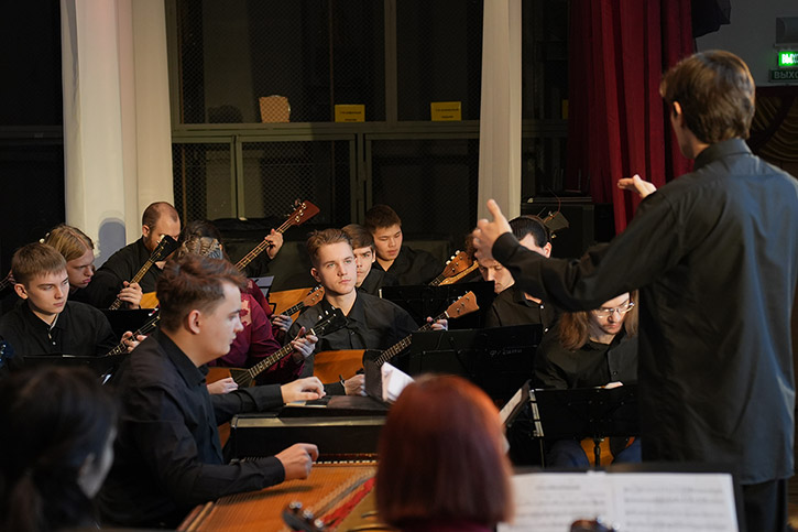 Отличительная черта коллектива (специфика и уникальность): Студенческий коллектив, играющий на русских национальных музыкальных инструментах - домре, балалайке, баяне, гуслях, духовых и ударных, способный воплощать в жизнь различные творческие идеи и проекты, а также решать образовательные и профессиональные задачи. Деятельность коллектива направлена на поддержание традиций оркестрового исполнительства классической, народной, современной музыки, а также на расширение репертуара ОРНИ и сотрудничество с современными композиторами.
