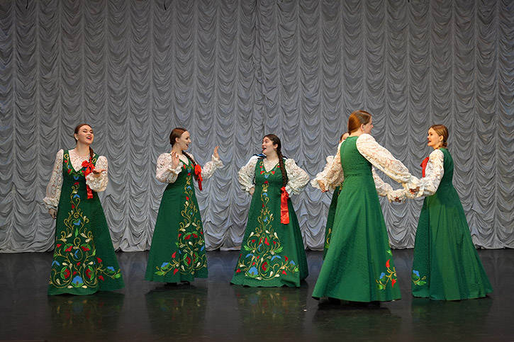 Отличительная черта коллектива (специфика и уникальность): В репертуаре коллектива народные песни различных областей России разной сложности в оригинальной записи, в редакции, а также песни советских композиторов. Фольклорный песенный материал представлен разными жанрами: календарные, воинские, исторические, лирические, плясовые песни. Выбор произведений для ансамбля обусловлен уровнем развития и подготовки обучающихся на разных этапах образовательного процесса, а также задачами концертной деятельности. Каждые четыре года с выпуском дипломников и набором нового первого курса состав коллектива полностью обновляется. Ансамбль "Родник" ведет активную концертную деятельность, участвует в конкурсах и фестивалях различного уровня.