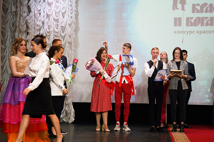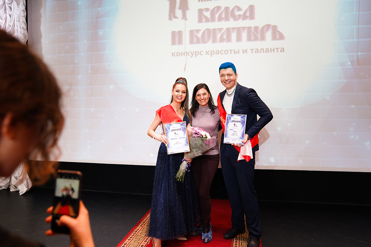 Титул Краса и Богатырь колледжа в этом году достался студентам режиссерского отделения - Анастасии Никоновой и Тарасу Гугля! Жюри единогласно присвоили победу паре - за творческие и яркие выступления. В этом году тема конкурса "Социальные сети". Всего в конкурсе участие приняли 10 студенческих пар со всех отделений колледжа. Ребята представили свои визитные карточки и конкурс дефиле.