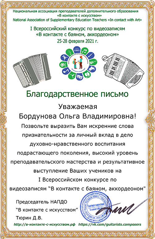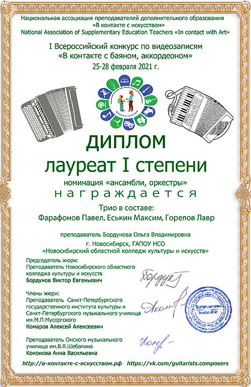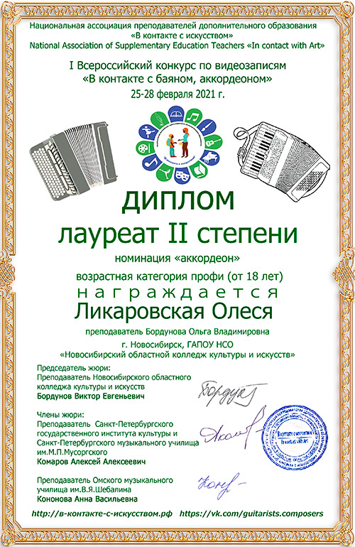 Подведены итоги I Всероссийского конкурса по видеозаписям "В контакте с баяном, аккордеоном"!
