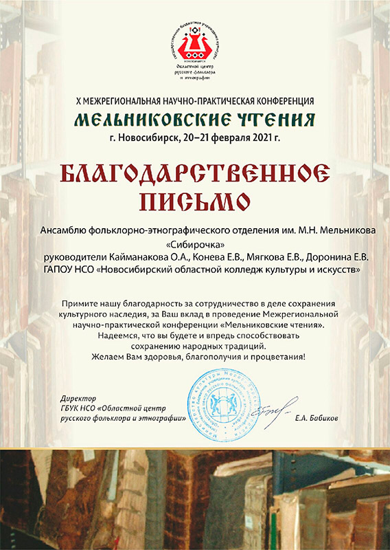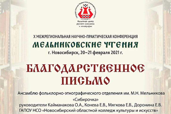 Организаторы конференции - Областной центр русского фольклора и этнографии совместно с Новосибирской государственной областной научной библиотекой при поддержке министерства культуры Новосибирской области.