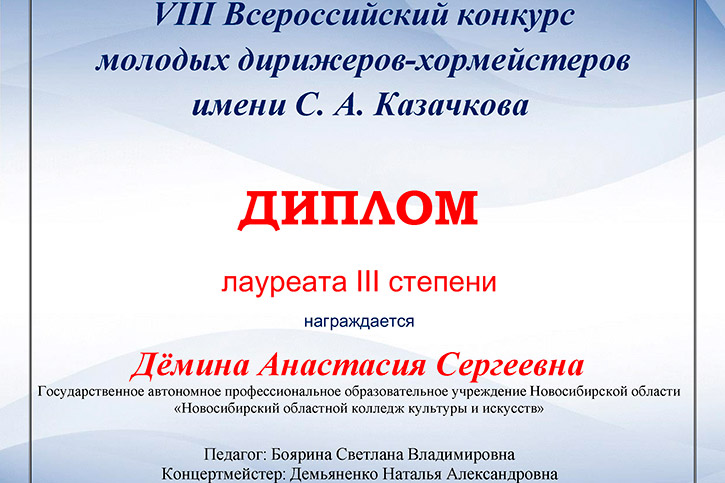 Наши студентки Дирижёрско-хорового (академического) отделения Анастасия Дёмина и Софья Матвейчук - стали Лауреатами III степени! Преподаватель Боярина Светлана Владимировна, концертмейстер Демьяненко Наталья Александровна.