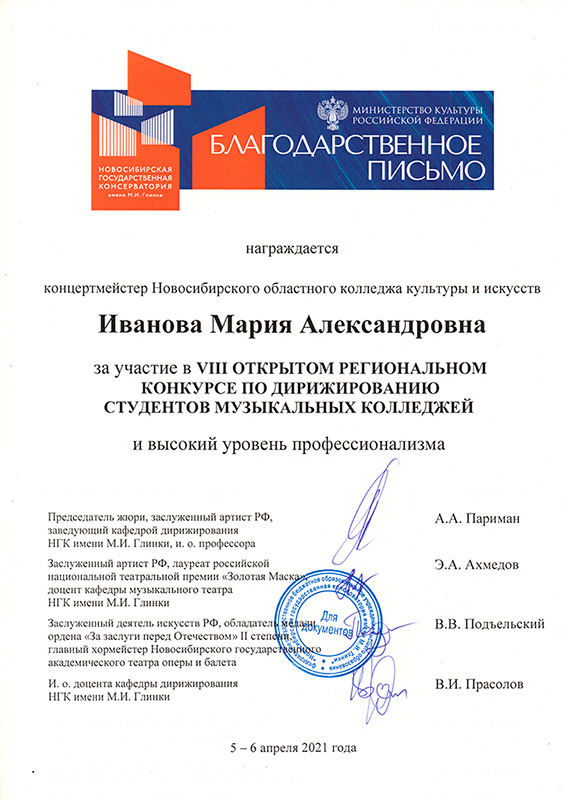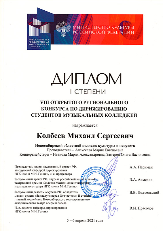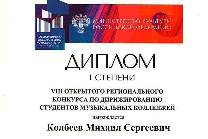 В состав жюри Конкурса вошли известные дирижеры Новосибирска, которые на высоком уровне оценили подготовку нашему студента Михаила Колбеева!
