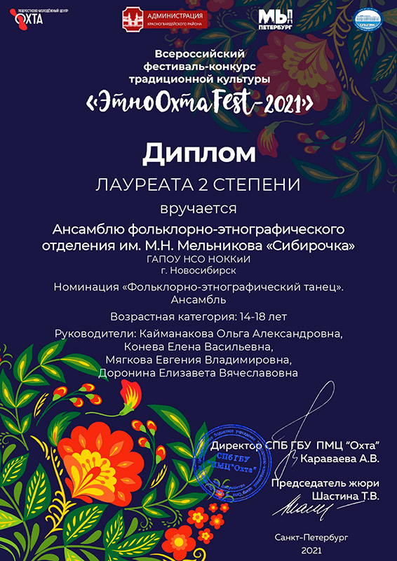 В Санкт-Петербурге подведены итоги дистанционного Всероссийского фестиваля-конкурса традиционной культуры "ЭтноОХТАFest-2021". К участию в фестивале были приглашены отдельные исполнители и коллективы, представляющие многообразие традиционной культуры народов России, СНГ и мира! Организатором фестиваля выступил СПб ГБУ "Подростково-молодежный центр "Охта".