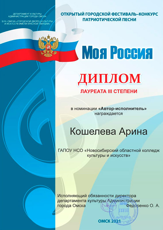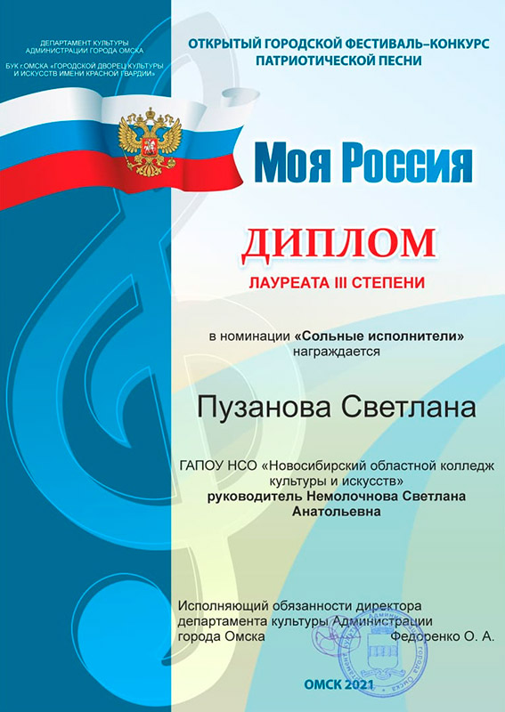 Подведены итоги Открытого городского фестиваля-конкурса патриотической песни "Моя Россия", который проходил в Омске в дистанционном формате.