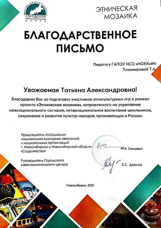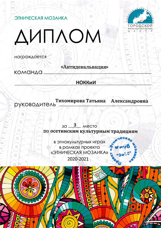 Поздравляем ребят и преподавателей с успешным завершением этнокультурных игр "Этническая мозаика" сезона 2020-2021!