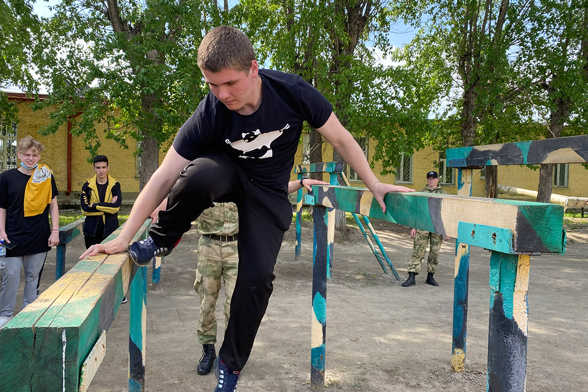 Только физически крепкие и смелые юноши смогли попробовать пройти полосу препятствий и одеть костюм РХБЗ.