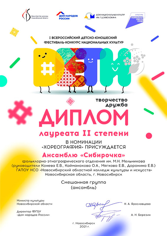 Ансамбль "Сибирочка" фольклорно-этнографического отдаления нашего колледжа получил диплом лауреата II степени в номинации "хореография".