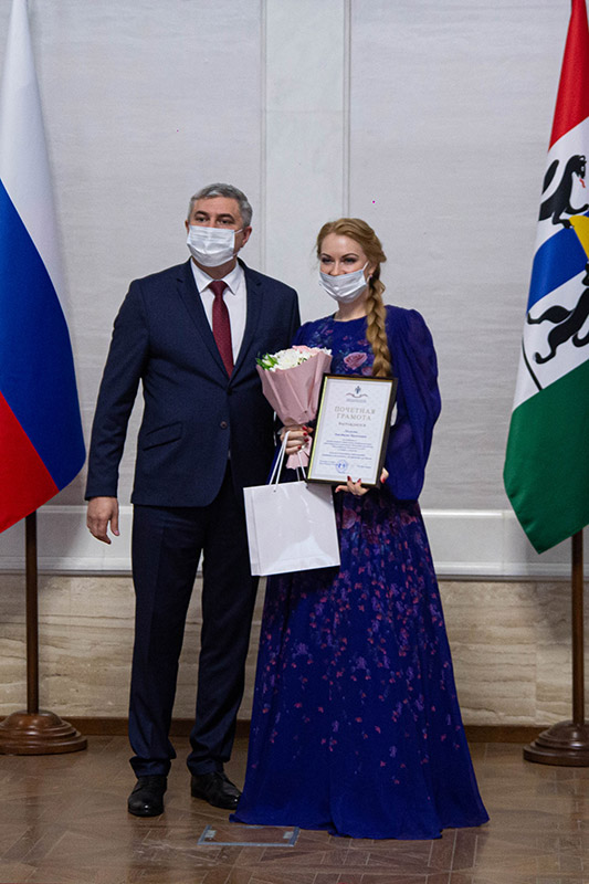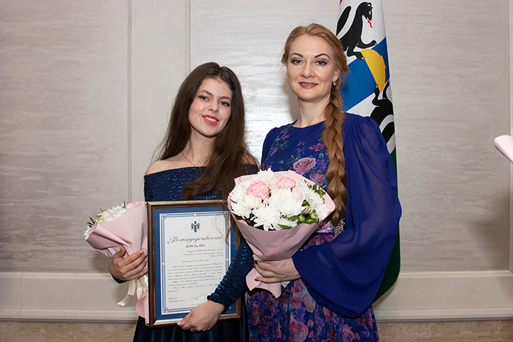 Кроме этого, Наталья Сергеевна Кравец - преподаватель и концертмейстер отделения русских народных инструментов, непосредственный наставник Татьяны Мелковой, также получила Благодарность Губернатора. Анастасия Васильевна Лысякова - преподаватель отделения сольного и хорового отделения, наставник Стеллы Першиной, получила Почётную грамоту министерства культуры региона.