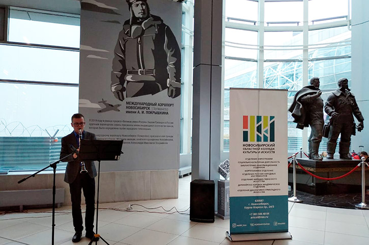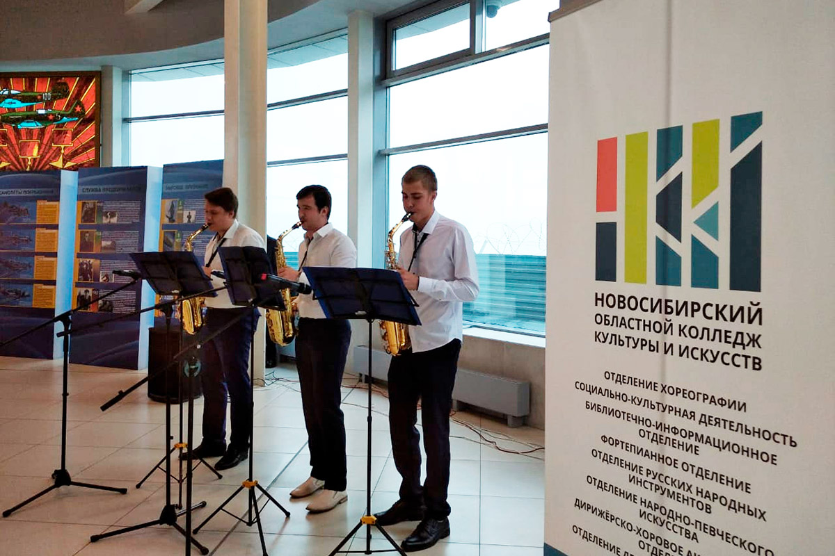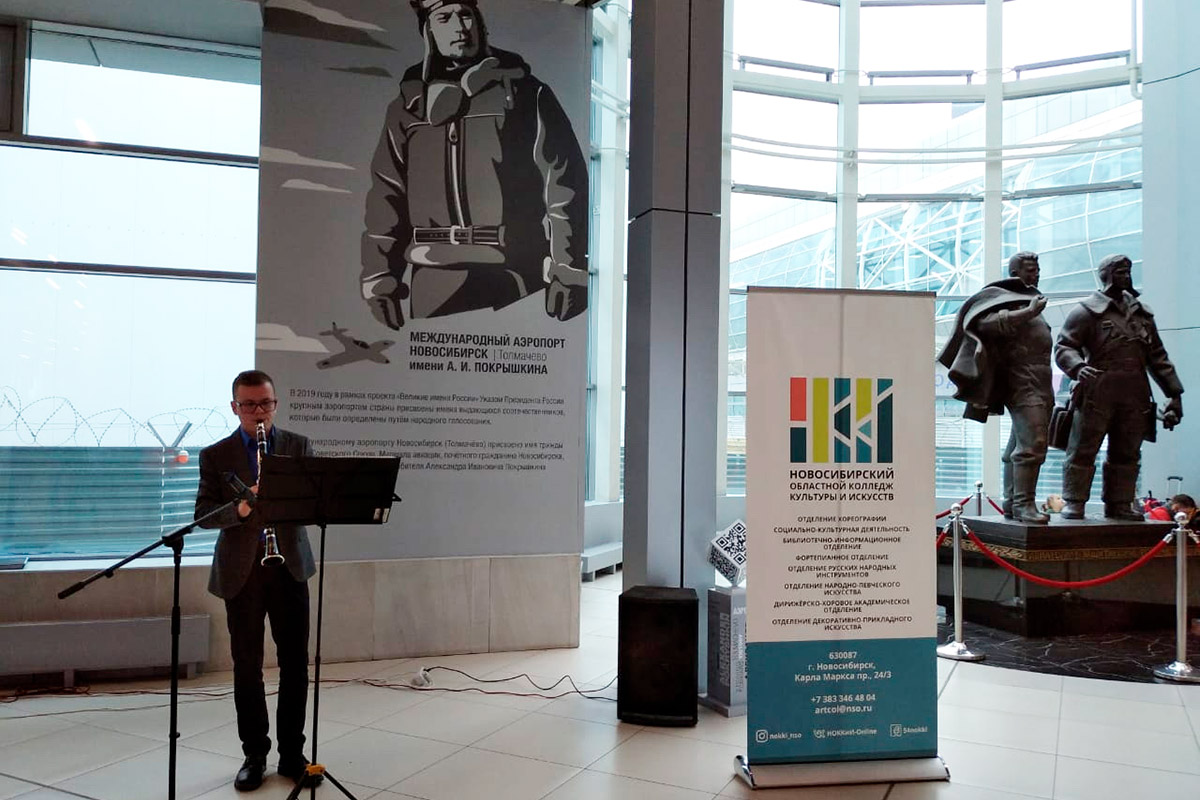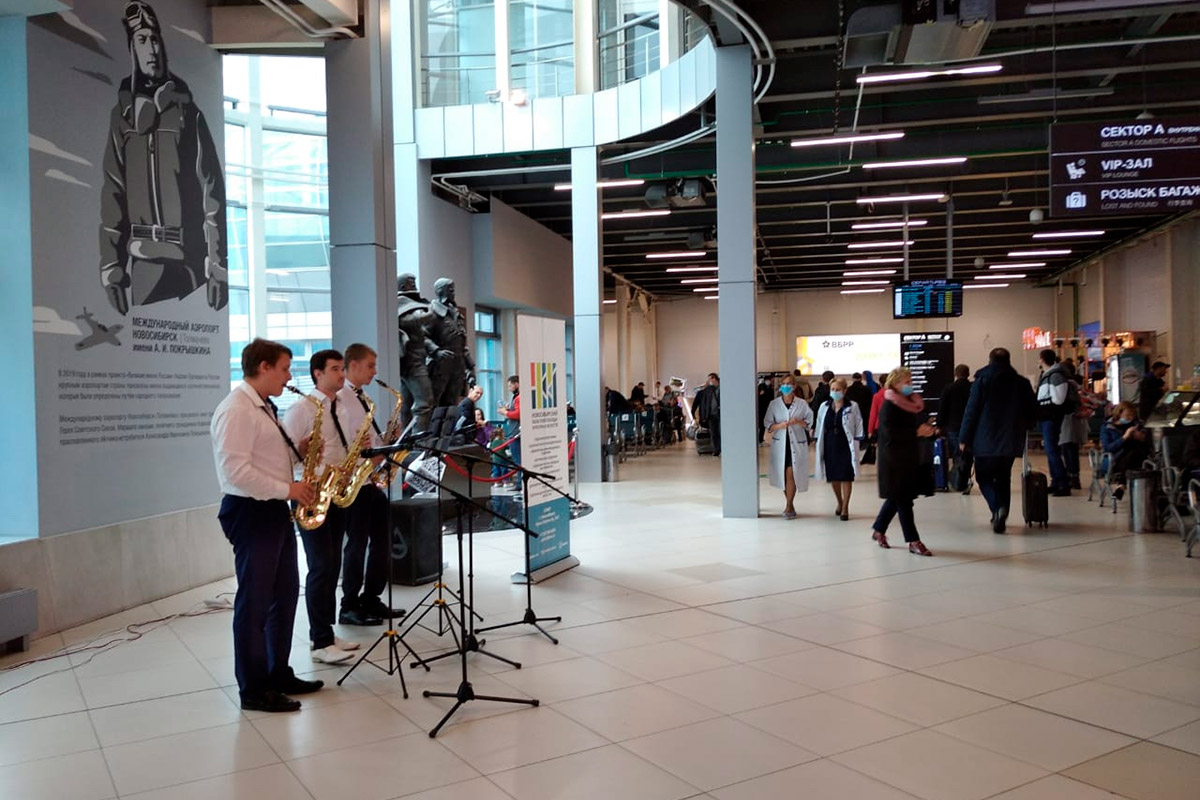 В аэропорту Толмачёво праздничный концерт дали солисты эстрадно-духового оркестра, Барабинского филиала нашего колледжа.