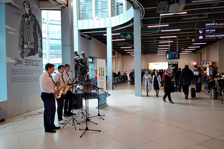 Хиты современный эстрады и джазовые композиции в исполнении трио саксофонистов и кларнет соло - вызывали восторг и восхищение у пассажиров и сотрудников воздушной гавани. Наши артисты проделали, длинны путь специально, чтобы поднять настроение тем, кто в это время испытывал минуты расставания с родными или украсить радость встречи с любимыми. Ведь язык музыки прост и понятен каждому. Музыка, как никакое другое искусство, способна проникать в душу, сердце и разум человека, наполняя их ощущениями и эмоциями.