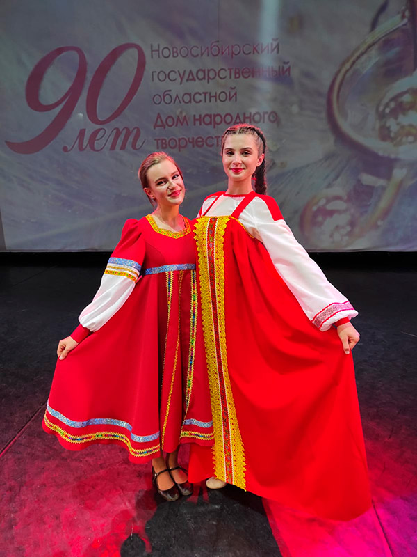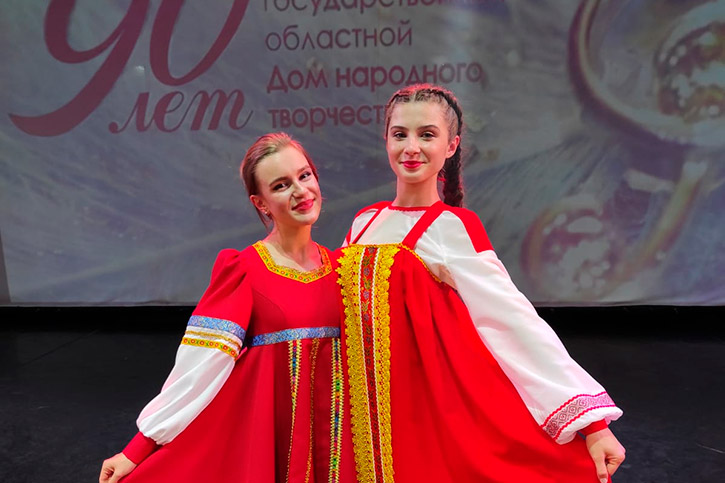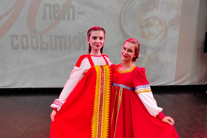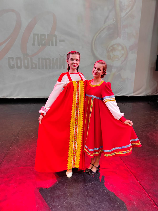 Выпускницы школы "Лад" и нынешние студентки I курса секции народного хорового пения отделения "Народно-певческого искусства" Арина Баладурина и Агата Спольник достойно представили свои номера на сцене концертного зала "Евразия".