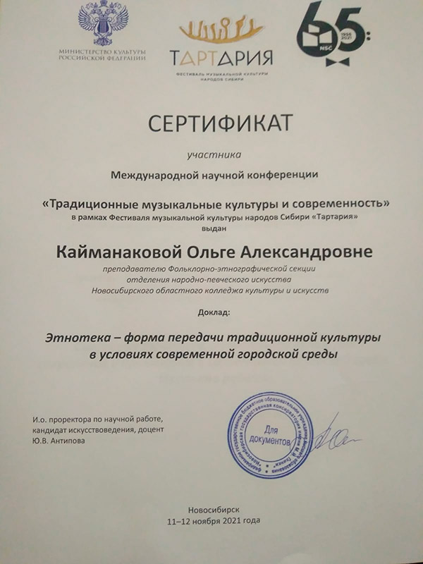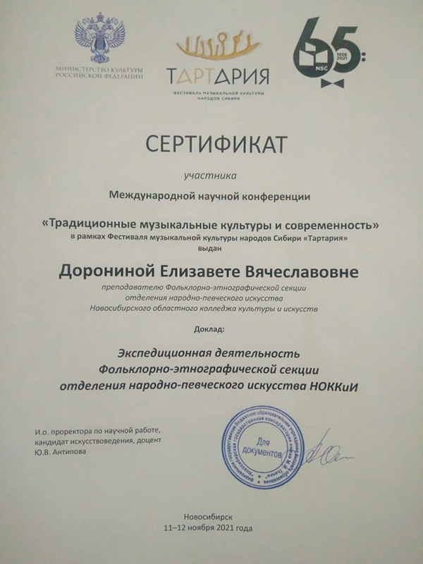 Педагоги фольклорно-этнографической секции отделения народно-певческого искусства приняли участие в международной научной конференции "Традиционные музыкальные культуры и современность" в рамках фестиваля музыкальной культуры народов Сибири "Тартария".