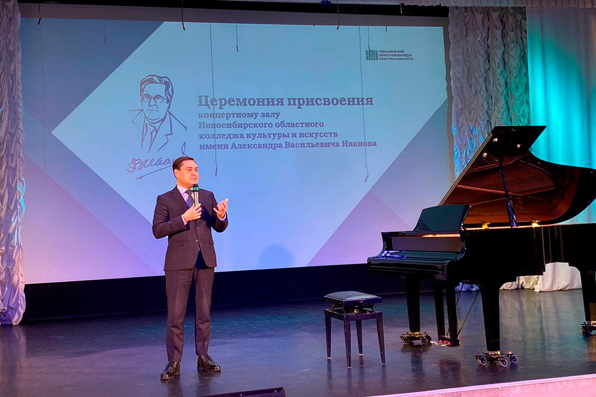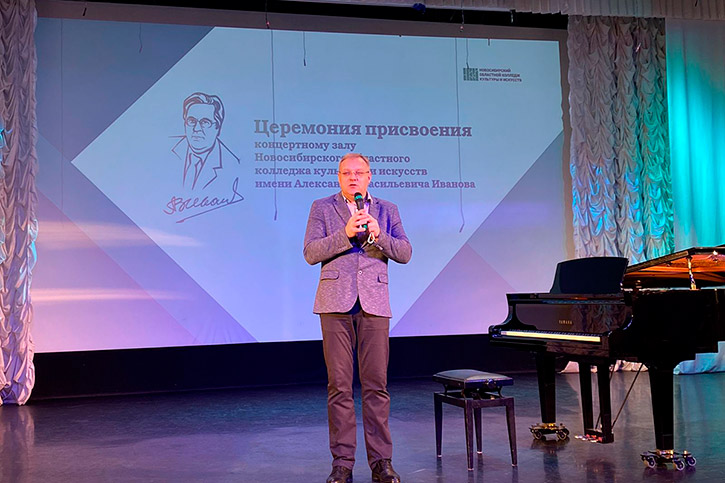 Церемония присвоения концертному залу Новосибирского областного колледжа культуры и искусств имени Александра Васильевича Иванова - Заслуженного работника Российской Федерации, Заслуженного работника культуры и искусств Новосибирской области, кавалера Золотого Почетного знака "Достояния Сибири", директора НОККиИ с 1991-2020 г. - состоялась сегодня.