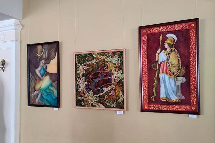 Отделение декоративно-прикладного искусства НОККиИ открыла очередную выставку в стенах ДК имени А.И.Ефремова. На выставке представлены плоскостные работы студентов в разных техниках: батик, вышивка, роспись, графика. Посмотреть выставку и оценить работы приглашаются все желающие! Дом культуры работает с 08:00–18:00 часов.
