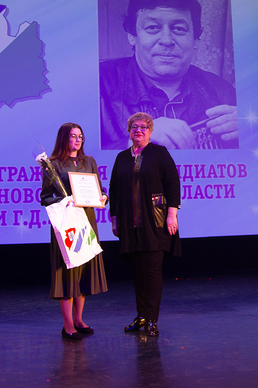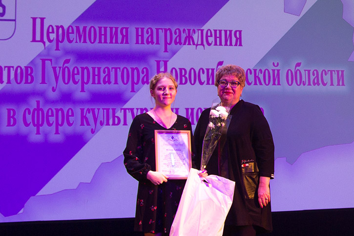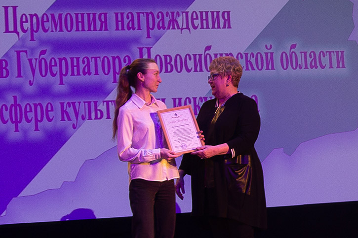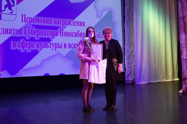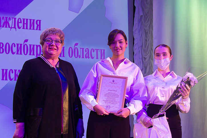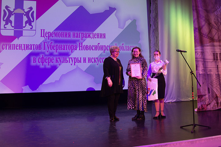 Свидетельства на получении стипендий вручила министр культуры Новосибирской области Наталья Ярославцева.