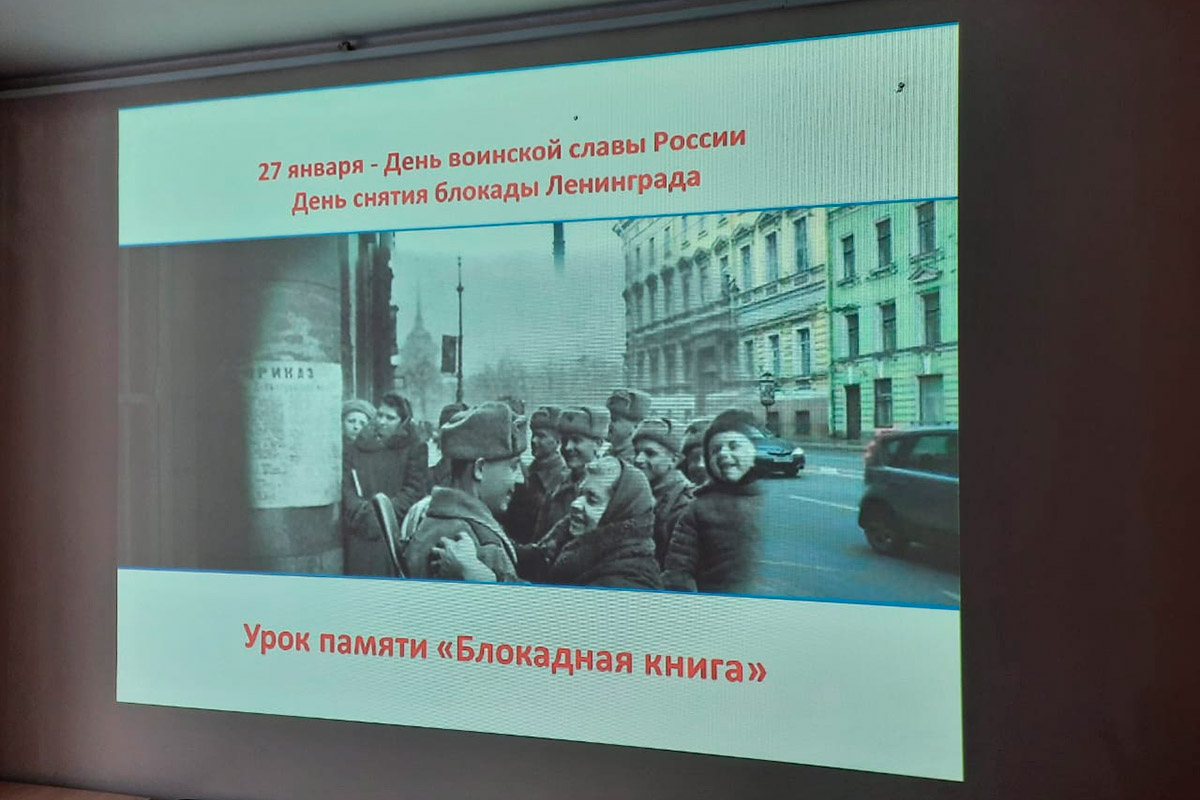 Накануне, в библиотеке нашего колледжа для студентов прошёл открытый урок памяти "Блокадная книга". Где ребятам рассказали о том, что Блокада Ленинграда - трагедия мирового масштаба, а его оборона - бесценный подвиг, который не померкнет в памяти поколений. Студенты увидели кадры кинохроники тех лет, книжную выставку "Был город-фронт, была блокада…", где представлены художественные, документальные и научно-популярные издания, рассказывающие об этих событиях. Кульминацией урока стали прочтение стихов Ольги Берггольц, Седьмая "Ленинградская" симфония Дмитрия Шостаковича и минута молчания в память о погибших в годы Великой Отечественной войны.