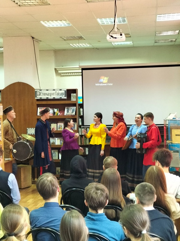 В Центральной городской библиотеке им. А.П.Гайдара для школьников восьмых классов Ленинского района провели встречу со студентами отделения русских народных инструментов и фольклорно-этнографической секции отделения народного певческого искусства. Музыкальными номерами сведёнными в одну концертную программу наши ребята показали, чему, научились в колледже. Кроме этого, школьникам показали профориентационный ролик колледжа обо всех отделениях, чтобы восьмиклассники могли больше узнать о нашем учебном заведении и смогли определиться с выбором своей будущей профессии.