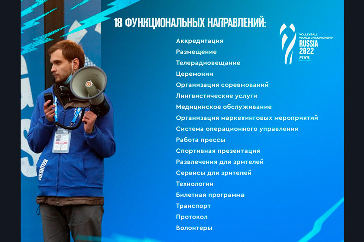 В подготовке и самом турнире примут участие более 3,5 тысячи волонтёров по 18 функциональным направлениям - от работы со зрителями и проведению церемоний до обеспечения сервисов для СМИ и лингвистических услуг.