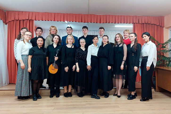 Участие в концерте приняли студенты отделений: дирижёрско-хорового академического, народно-певческого искусства, русских-народных инструментов, а также студенты класса преподавателя Новакович Евгении Викторовны по предмету "Родственный инструмент-домра".