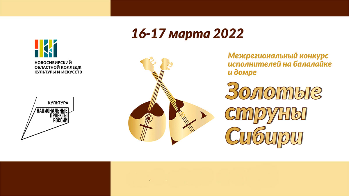 Межрегиональный конкурс исполнителей на балалайке и домре "Золотые струны Сибири" проводится с 2017 года, его учредителями являются министерство культуры региона и Новосибирский областной колледж культуры и искусств. Участниками станут учащиеся ДМШ и ДШИ, студенты профильных образовательных учреждений по номинациям "Балалайка", "Домра" и "Ансамбли" в пяти возрастных группах.