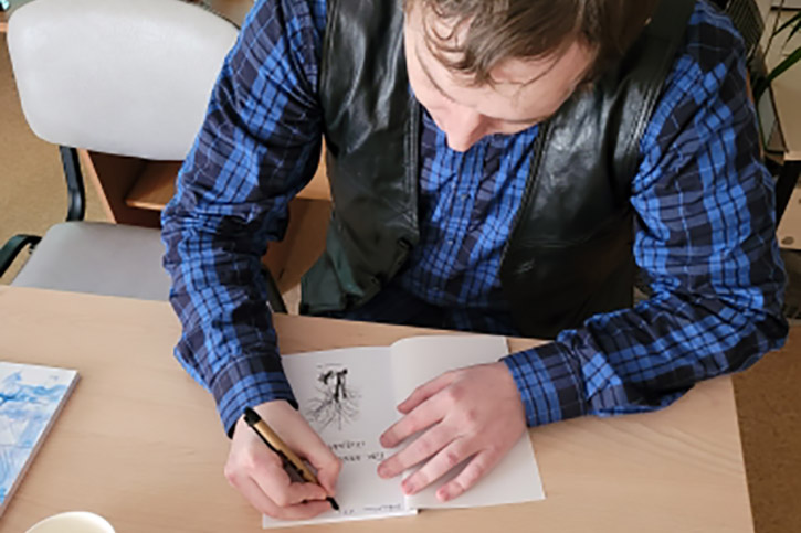 Впервые в библиотеке НОККиИ со студентами библиотечно-информационного отделения и будущими абитуриентами, приехавшими с разных районов Новосибирской области в рамках смены "СТАРТПРОФ", 29 марта встретились молодые поэты Анатолий Горовой и Мария Бершадская. В конце 2021 году А.Горовой издал свою первую авторскую книгу "Так много хочется сказать...", в которую вошли стихотворения, написанные в период с 2015 по 2021 гг.