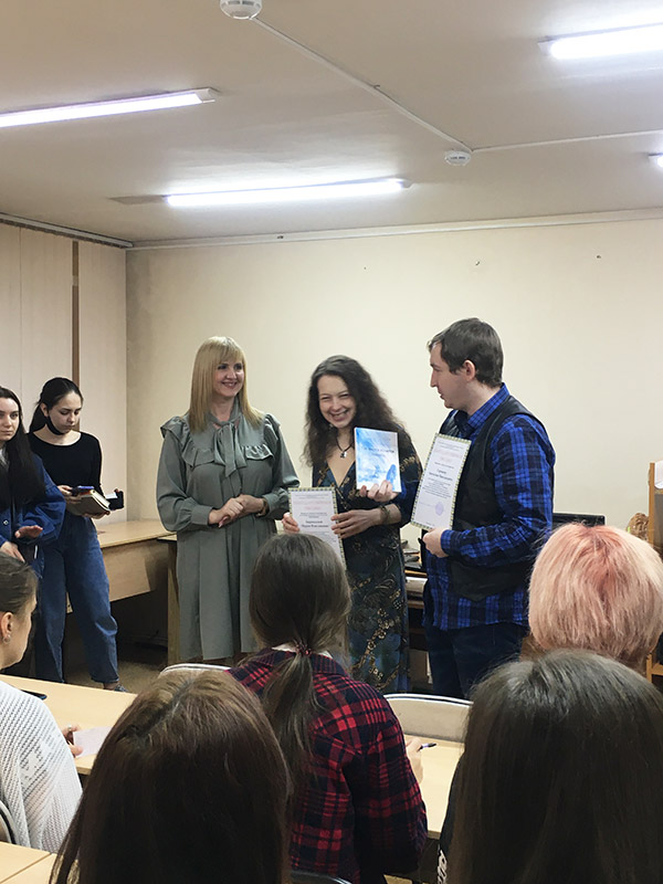 В финале презентации Анатолий подарил свой авторский сборник библиотеке НОККиИ. Теперь студенты смогут в любое время вместе с автором восхититься яркими красками времен года, проникнуться печалью по безвременно ушедшим героям, почувствовать, как же дороги им родители.