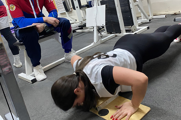 Девушки, по собственному выбору, демонстрировали навыки в отжимании или подтягивании из виса лежа на низкой перекладине. Юноши, в свою очередь, отжимались, подтягивались, или выполняли упражнение с рывком гири.