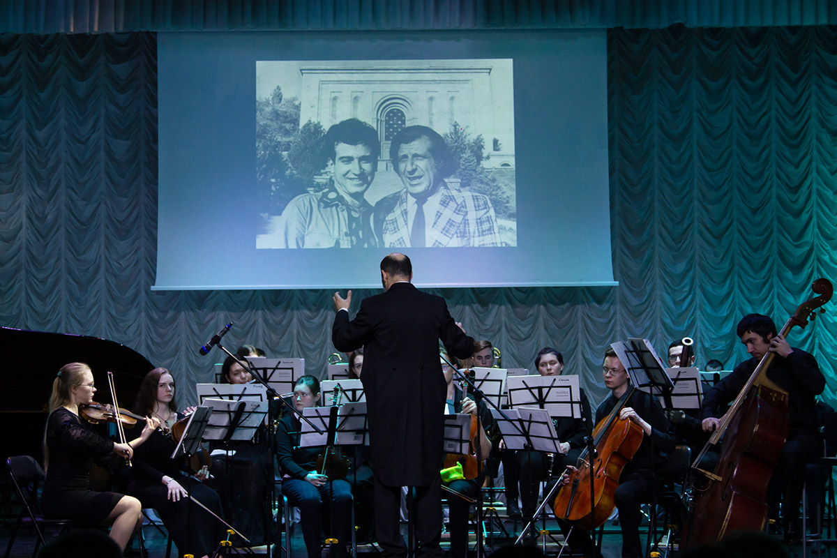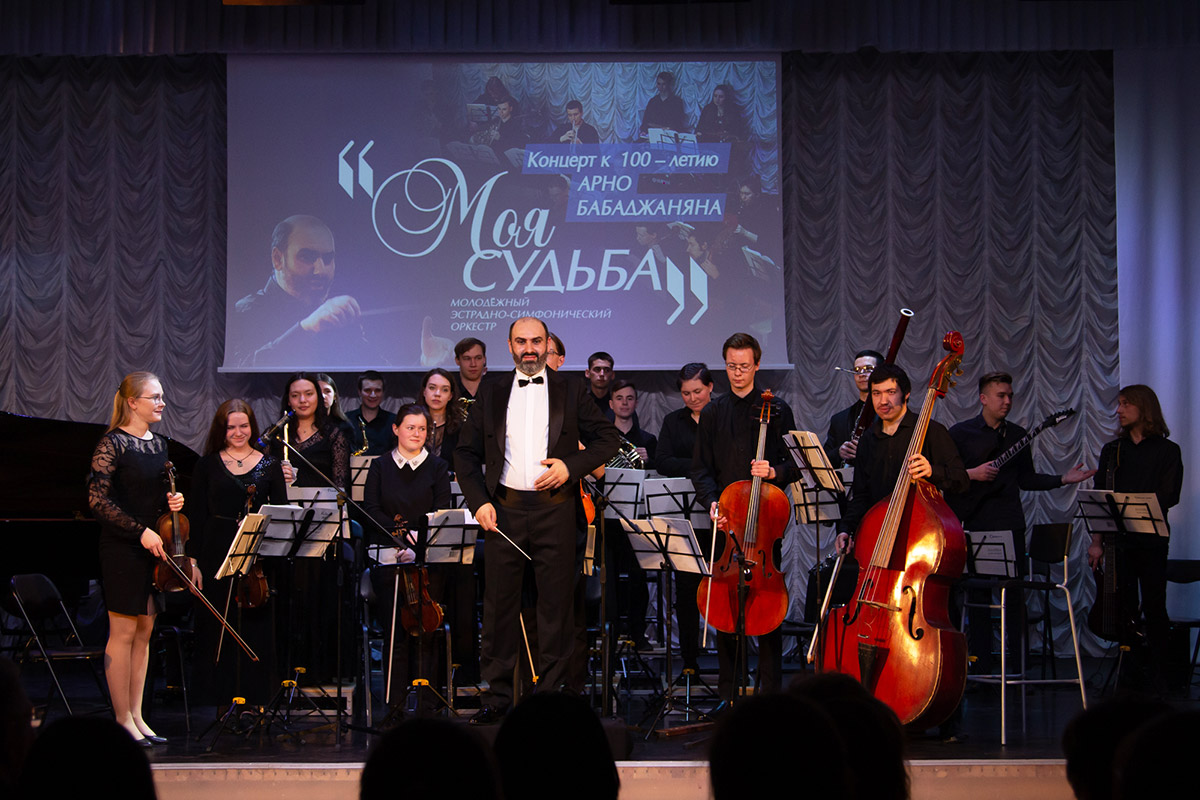 Музыка Бабаджаняна звучала в исполнении Молодежного эстрадно-симфонического оркестра, художественный руководитель и главный дирижер - Вячеслав Акопов.