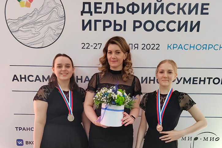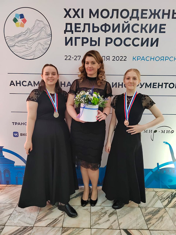 Серебряную медаль игр завоевал ансамбль "Con Spirito": Татьяна Мелкова, Бондаренко Анна-Мария, концертмейстер - Ульяна Шелудько (класс преподавателя Натальи Кравец).
