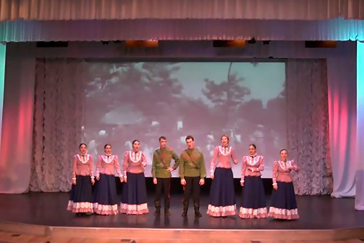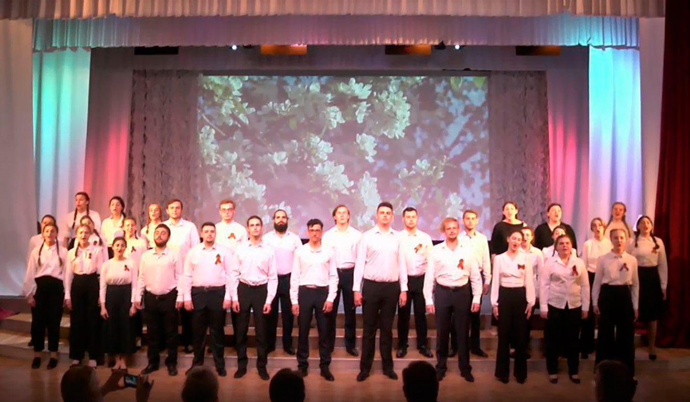 Хор учащихся "Новосибирского колледжа имени А.Ф.Мурова" исполнил патриотические песни, в том числе известную каждому и столь любимую в России песню "День Победы".