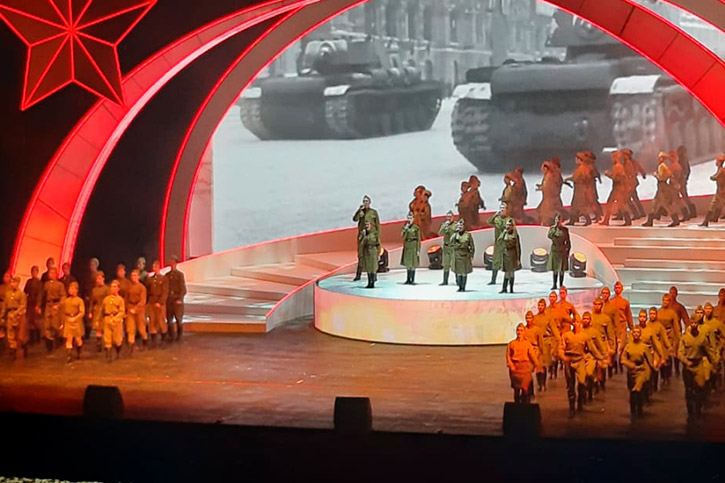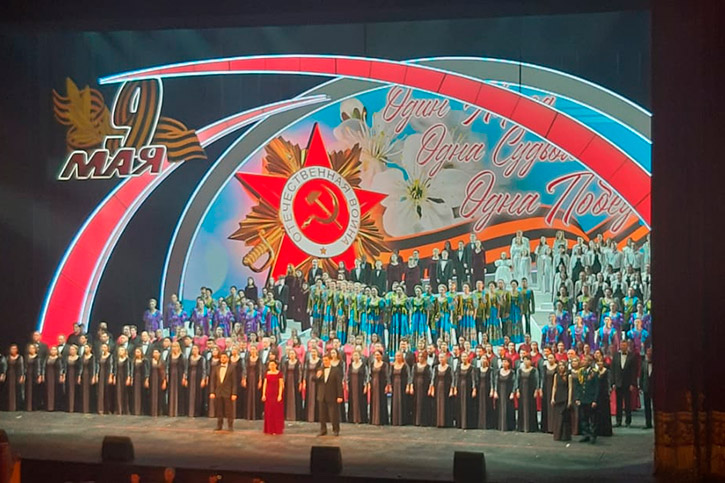Вечером - 8 мая на сцене Новосибирского государственного академического театра оперы и балета состоялось торжественное собрание с участием ветеранов Великой Отечественной войны и тружеников тыла, а также традиционный праздничный концерт. На сцене выступили, в том числе, и молодые артисты НОККиИ.