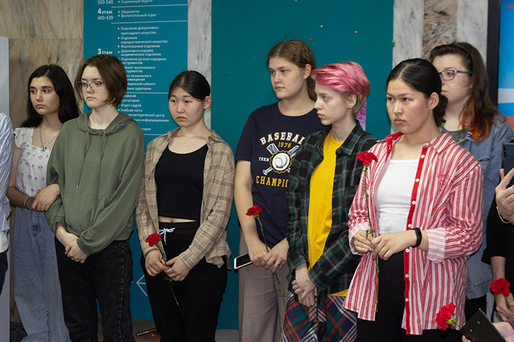 В День памяти и скорби студенты и преподаватели почтили память погибших в Великой Отечественной войне минутой молчания, а делегаты от колледжа возложили цветы к Вечному огню на Монументе Славы.
