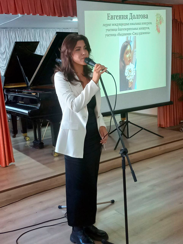 Ведущая салона познакомила зрителей с основными вехами биографии великой поэтессы, представила историю создания стихотворений и романсов на стихи Марины Ивановны. Со сцены прозвучали и авторские посвящения поэту. Цветаевскую атмосферу поддержала студентка 3 курса библиотечно-информационного отделения Кристина Белянина, которая подготовила для зрителей интерактивную площадку "В цветаевских строках".