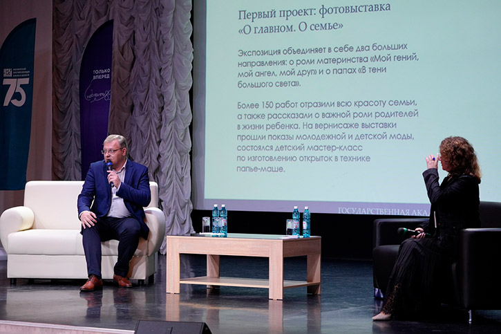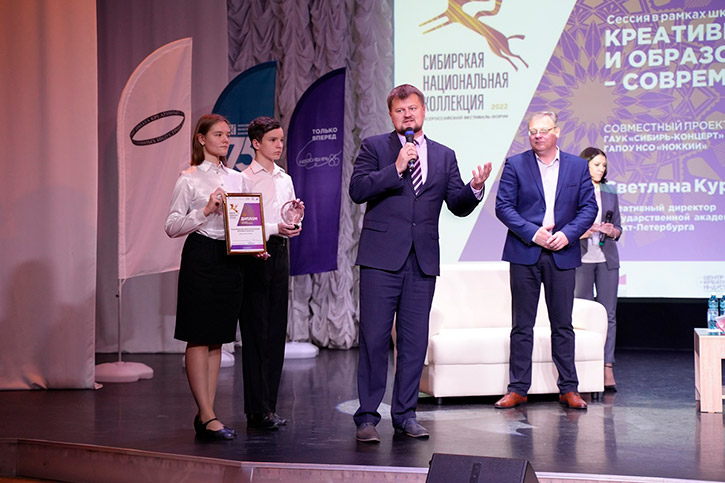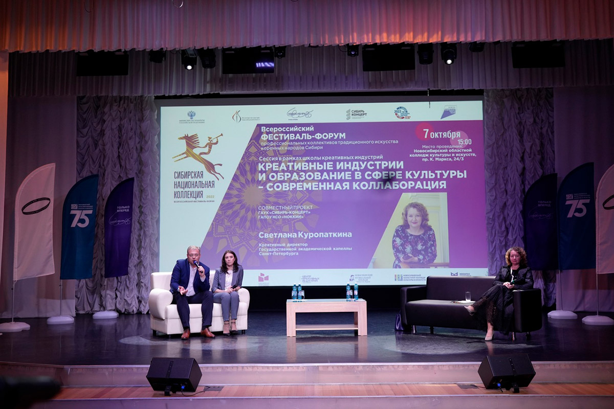 В соответствии с программой фестиваля-форума в концертном зале им. А.Иванова Новосибирского областного колледжа культуры и искусств состоялась сессия "Креативные индустрии и образование в сфере культуры - современная коллаборация". Спикер сессии - Светлана Куропаткина, руководитель Центра креативных индустрий государственной академической капеллы Санкт-Петербурга, проректор по внешним связям Художественно-технического института (ВХУТЕИН), член евразийского художественного Союза, выпускница Президентской программы подготовки управленческих кадров РФ.